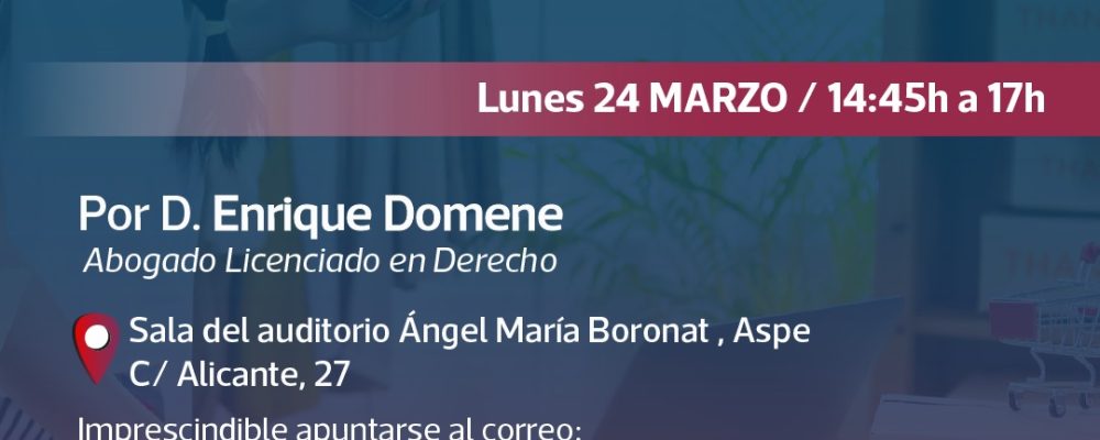 🔹 Inscripción: Para asistir, es imprescindible apuntarse enviando un correo a asociacioncomerciantesdeaspe@gmail.com.
